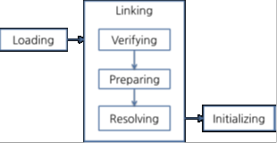 - Initializing – 클래스 변수들을 적절한 값으로 초기화. Static Initializer들을 수행하고 static 필드들을 설정된 값으로 초기화 한다.