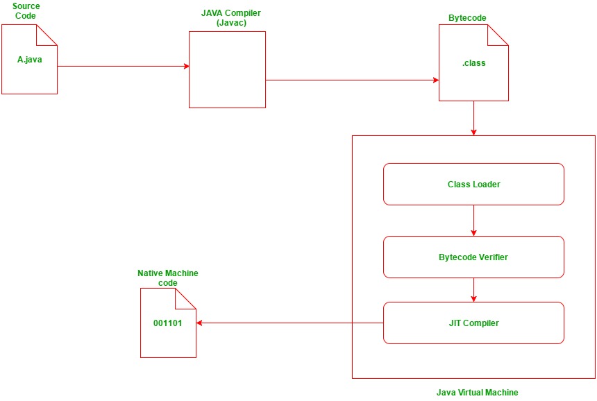 ** 컴파일을 통하여 생성된 바이트코드를 jvm이 받아 이를 다시 기계어로 변환하게 된다.