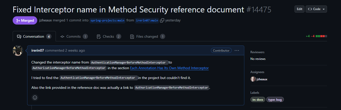 스프링 시큐리티 컨트리뷰션 오너가 되고나니깐 품위유지 할려고 스스로 노력할려고한다.